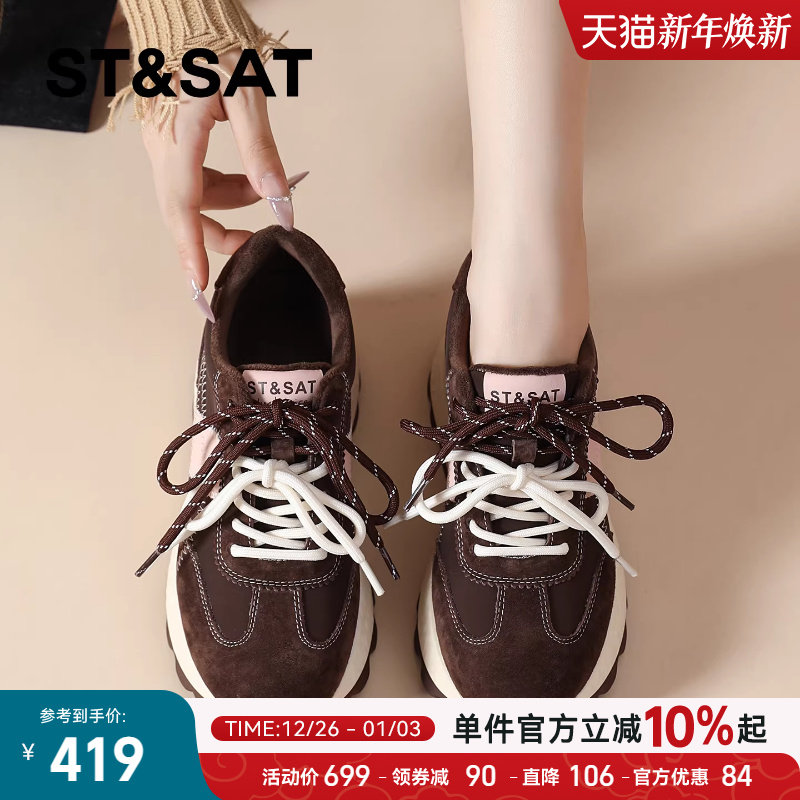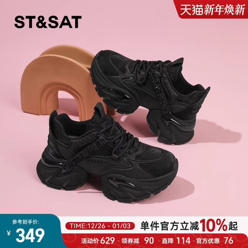 星期六厚底老爹鞋女显脚小2025冬季款内增高休闲鞋水钻做旧松糕鞋