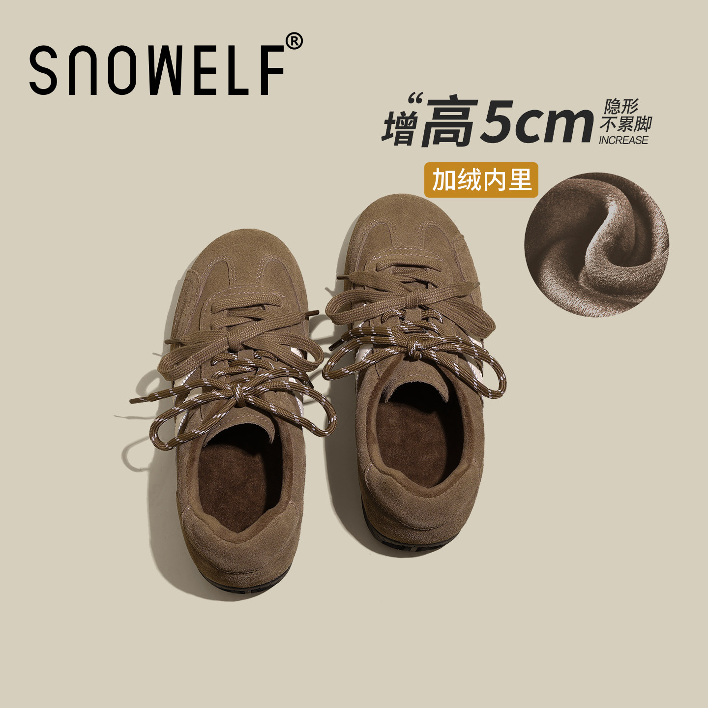 棕色加绒德训鞋女款2025冬季新款复古内增高休闲鞋保暖厚底运动鞋
