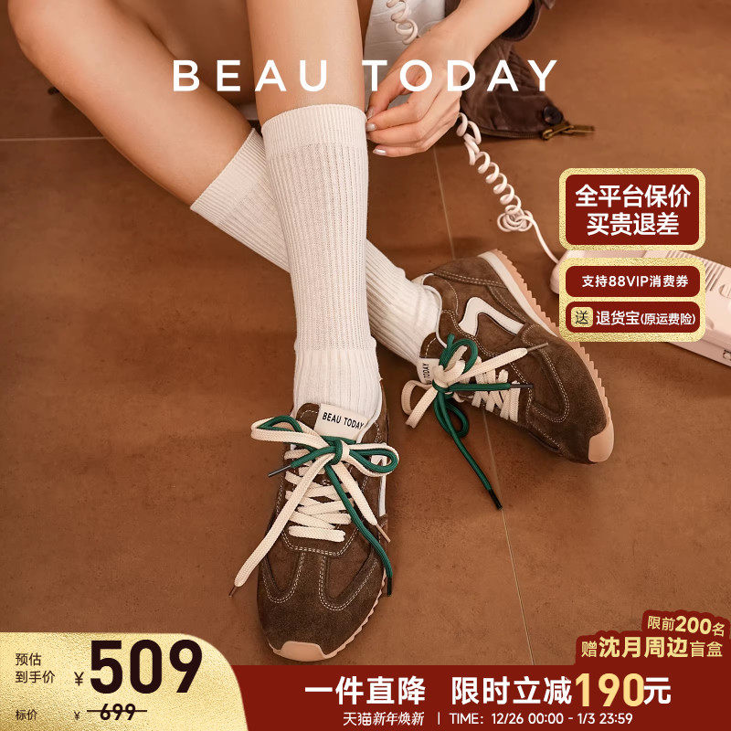 BeauToday厚底德训鞋女2025新款棕色内增高休闲鞋轻便阿甘鞋女鞋
