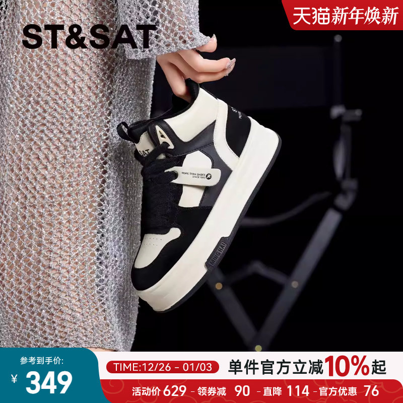 星期六黑白拼色熊猫鞋平底鞋冬季高帮加绒女鞋高级感内增高休闲鞋