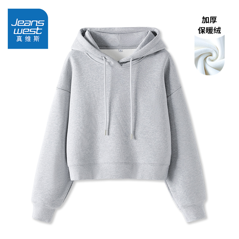 NOE真维斯短款连帽卫衣女2025新款秋冬季青少年加绒加厚休闲上衣