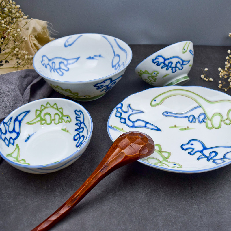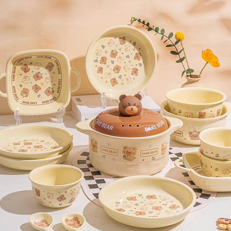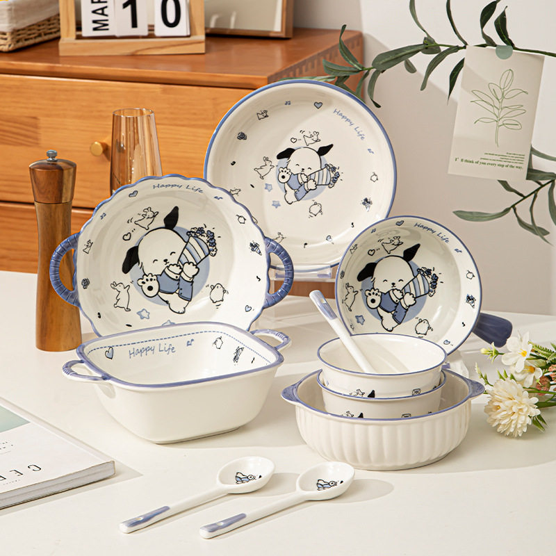 釉下彩可爱卡通碗碟套装家用2025新款高颜值盘子一人食面碗酸奶碗