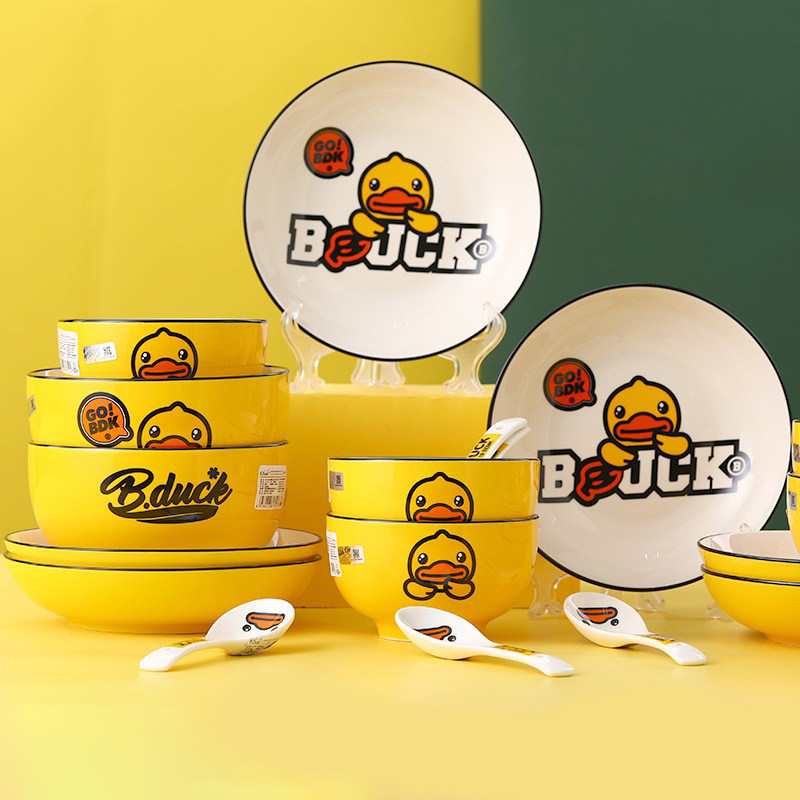 b.duck小黄鸭陶瓷碗家用可爱卡通碗盘套装可微波吃面饭碗餐具组合