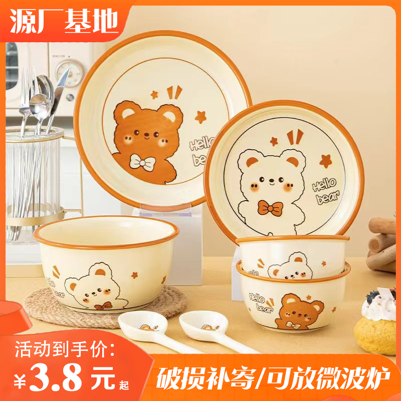 可爱卡通碗碟套装家用一人食饭碗汤面碗宿舍学生餐具盘子情侣碗筷