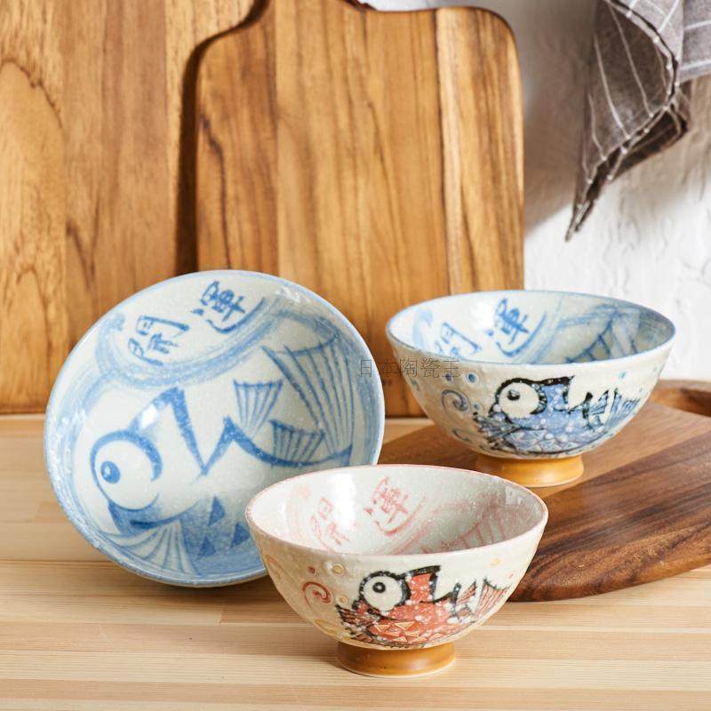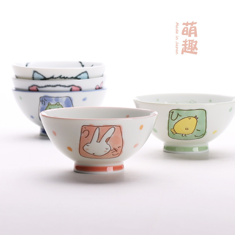 [陶瓷王]日本进口美浓烧陶瓷日式釉下彩可爱卡通碗米饭碗面碗汤碗