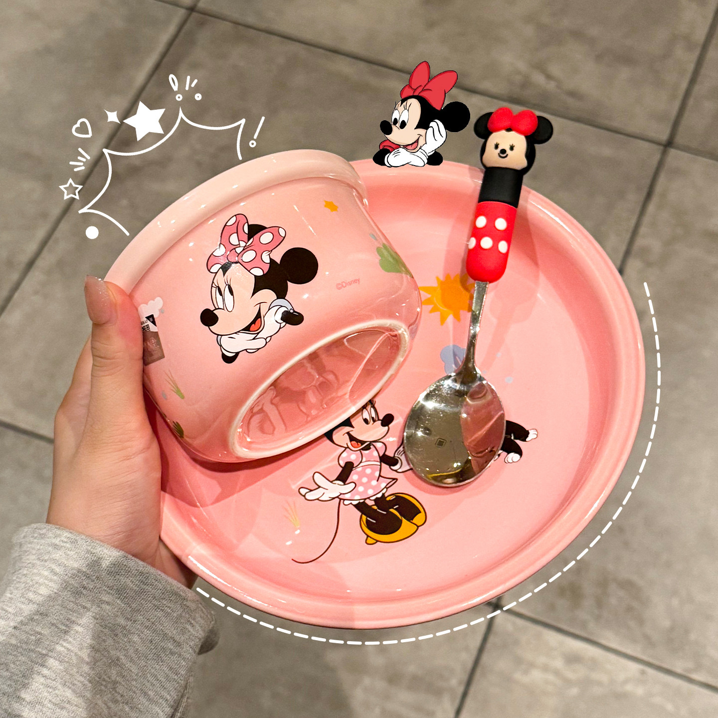 佩尔森可爱卡通碗碟套装家用陶瓷盘子碗筷勺子手柄碗一二人食餐具