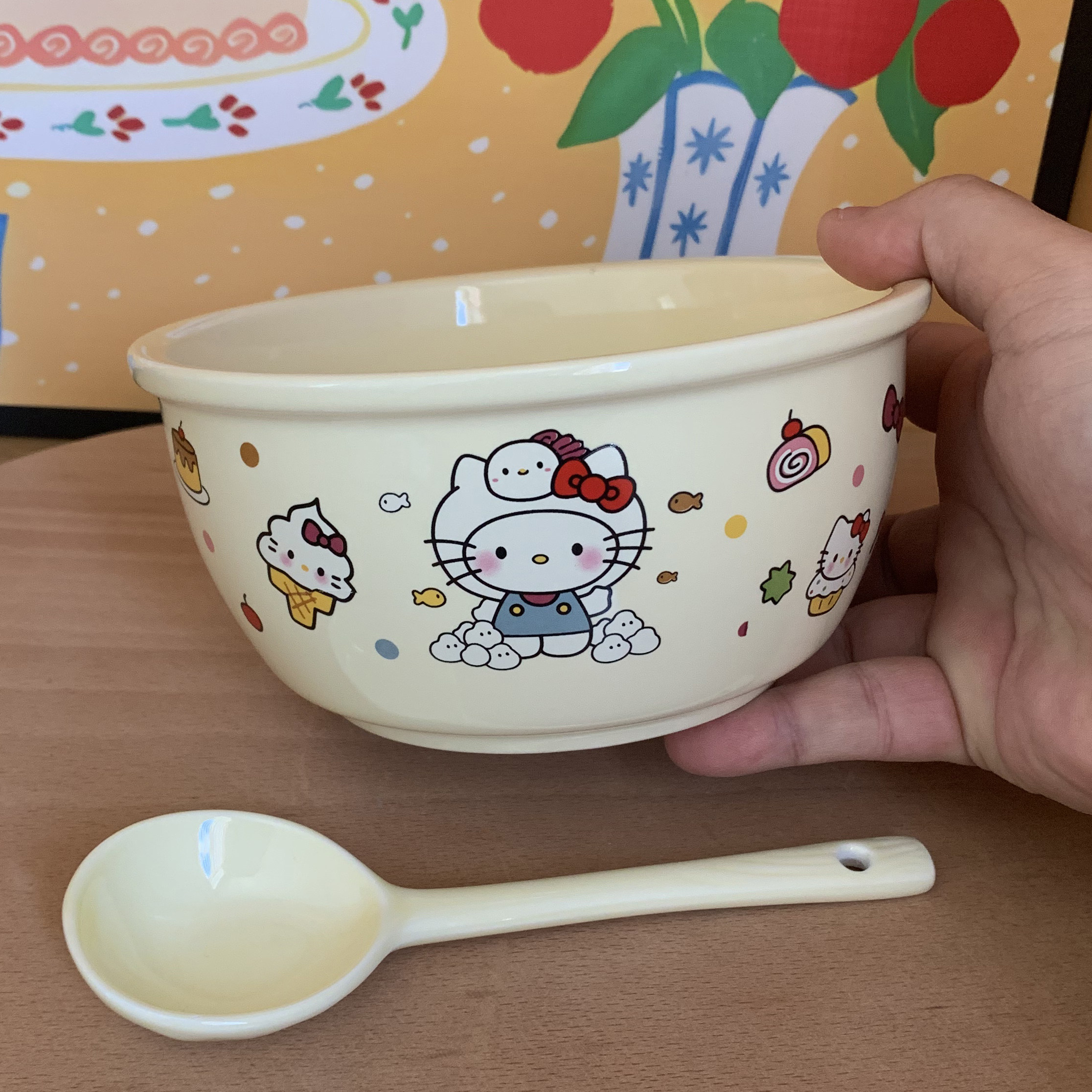 ins风可爱卡通粉色kitty泡面碗带勺带手柄大容量饭碗家用食堂陶瓷