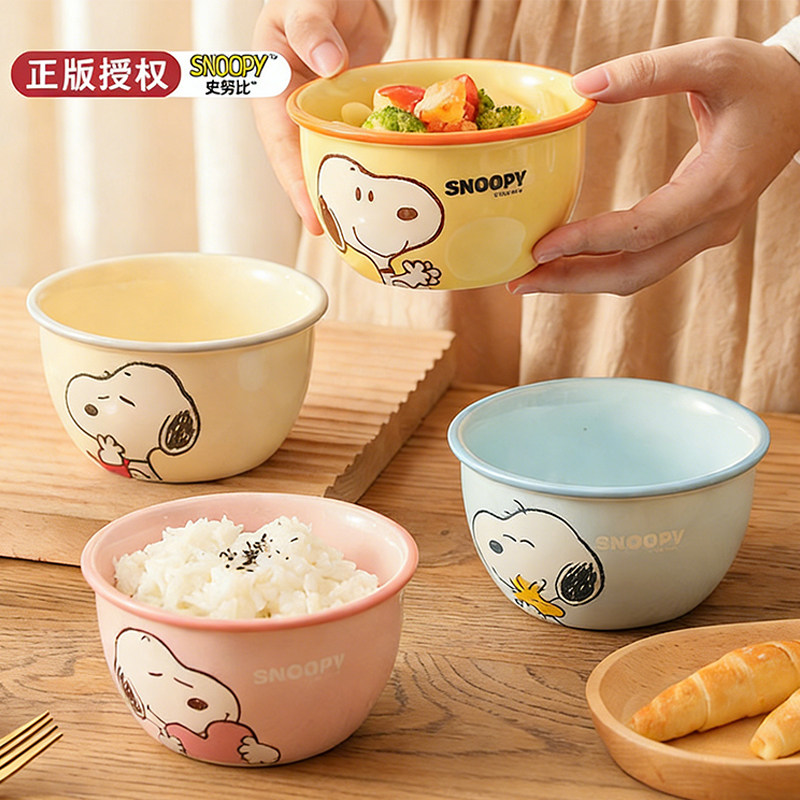 正版史努比联名陶瓷碗高颜值家用米饭碗可爱卡通碗儿童吃饭专用碗