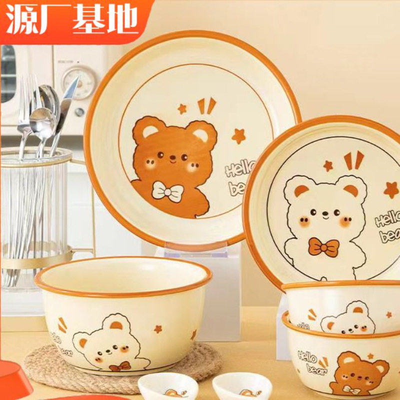 美康之家可爱卡通碗碟套装家用可爱卡通釉下彩陶瓷碗筷盘乔迁送礼