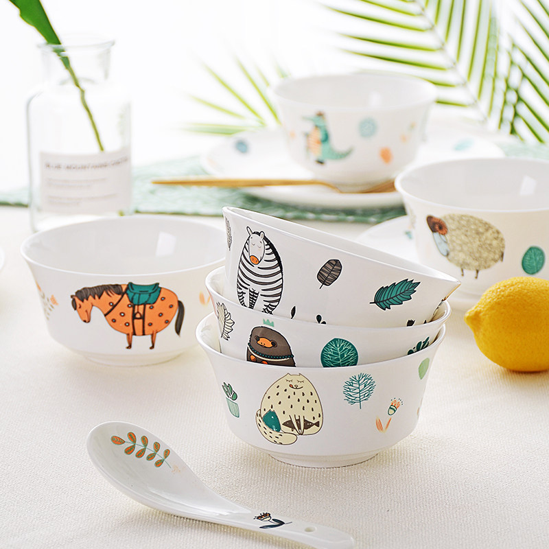 可爱卡通碗4个/6个骨瓷米饭碗餐具5英寸碗儿童餐具陶瓷碗套装面碗