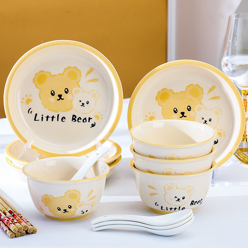 可爱卡通碗碟套装家用陶瓷饭碗盘子一二人食碗盘碗筷组合餐具套装