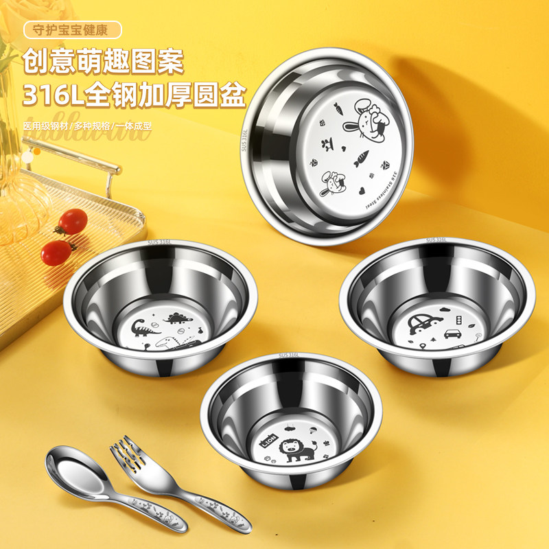 316L不锈钢碗盆家用幼儿园吃饭小盆不锈钢碗加厚防摔可爱卡通碗
