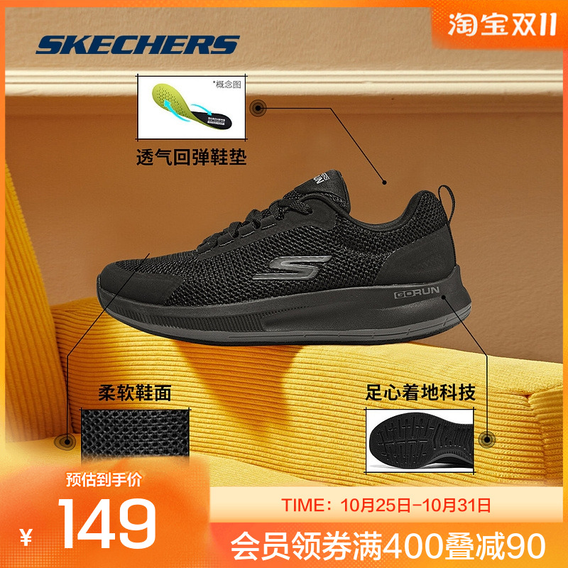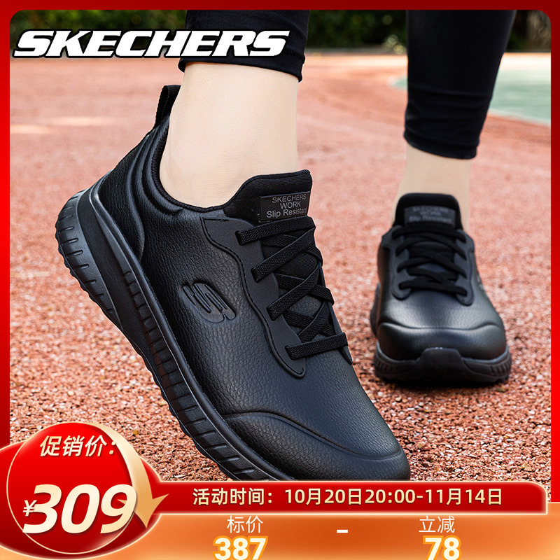 Skechers斯凯奇跑步鞋女秋季新款皮面防水耐磨减震黑色运动鞋女士