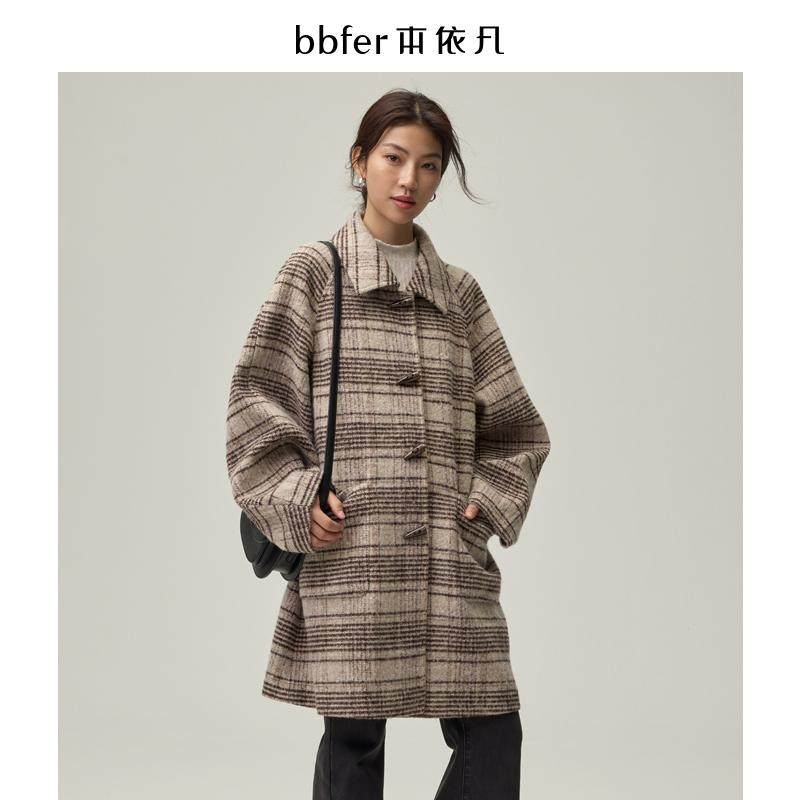 bbfer本依凡冬季毛呢大衣女格子文艺风宽松加厚呢子外套SSSDM0017