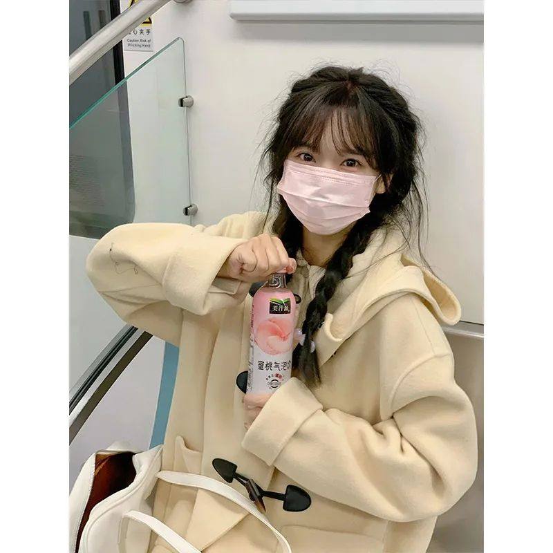车厘子jk制服牛角扣大衣女冬季原创日系学院风加厚小个子毛呢外套