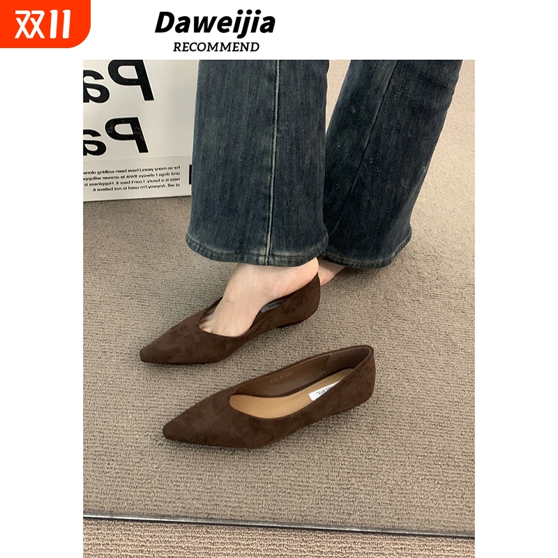 高跟鞋女2025新款春秋尖头坡跟女鞋羊皮绒面深口单鞋秋季真皮鞋子