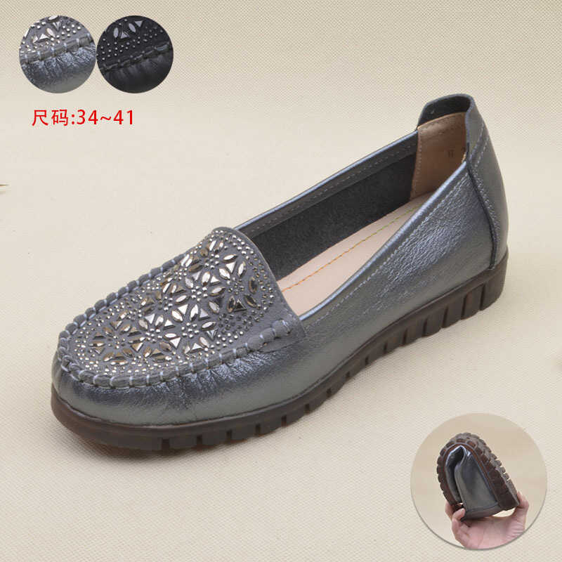 春秋新款真皮低跟软底妈妈鞋单鞋舒适防滑坡跟平底中老年皮鞋女鞋