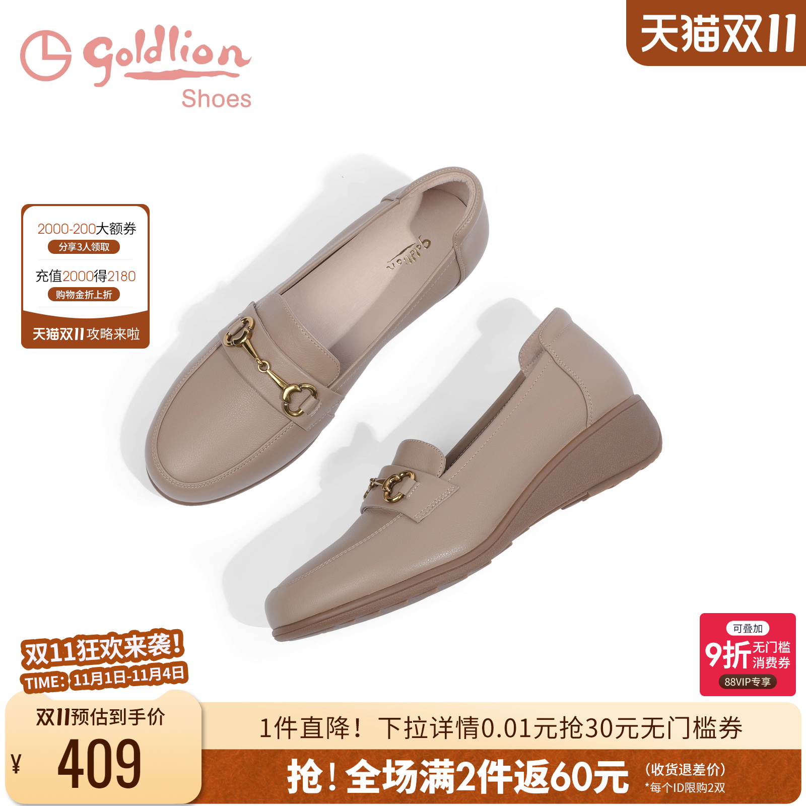 金利来妈妈皮鞋春秋舒适女鞋一脚蹬圆头浅口女单鞋真皮坡跟乐福鞋