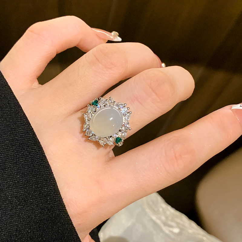 玉戒指女东海水晶翡翠宝玉石碧玉糖玉晴水猫眼散珠子和田玉银戒指