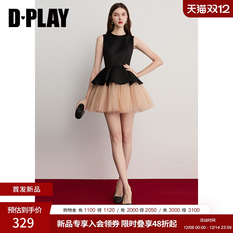 DPLAY【小黑裙系列】2025冬季新款黑色网纱连衣裙礼服裙女蓬蓬裙