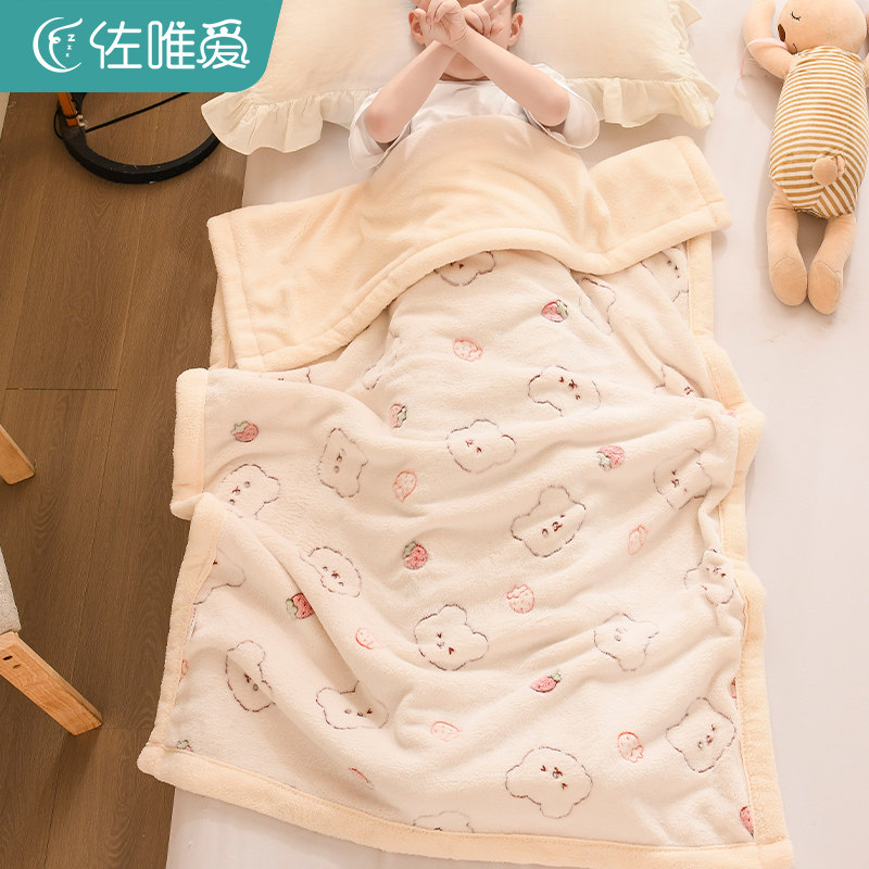 儿童毛毯加厚秋冬季双层婴儿宝宝盖毯小被子幼儿园午睡珊瑚绒毯子