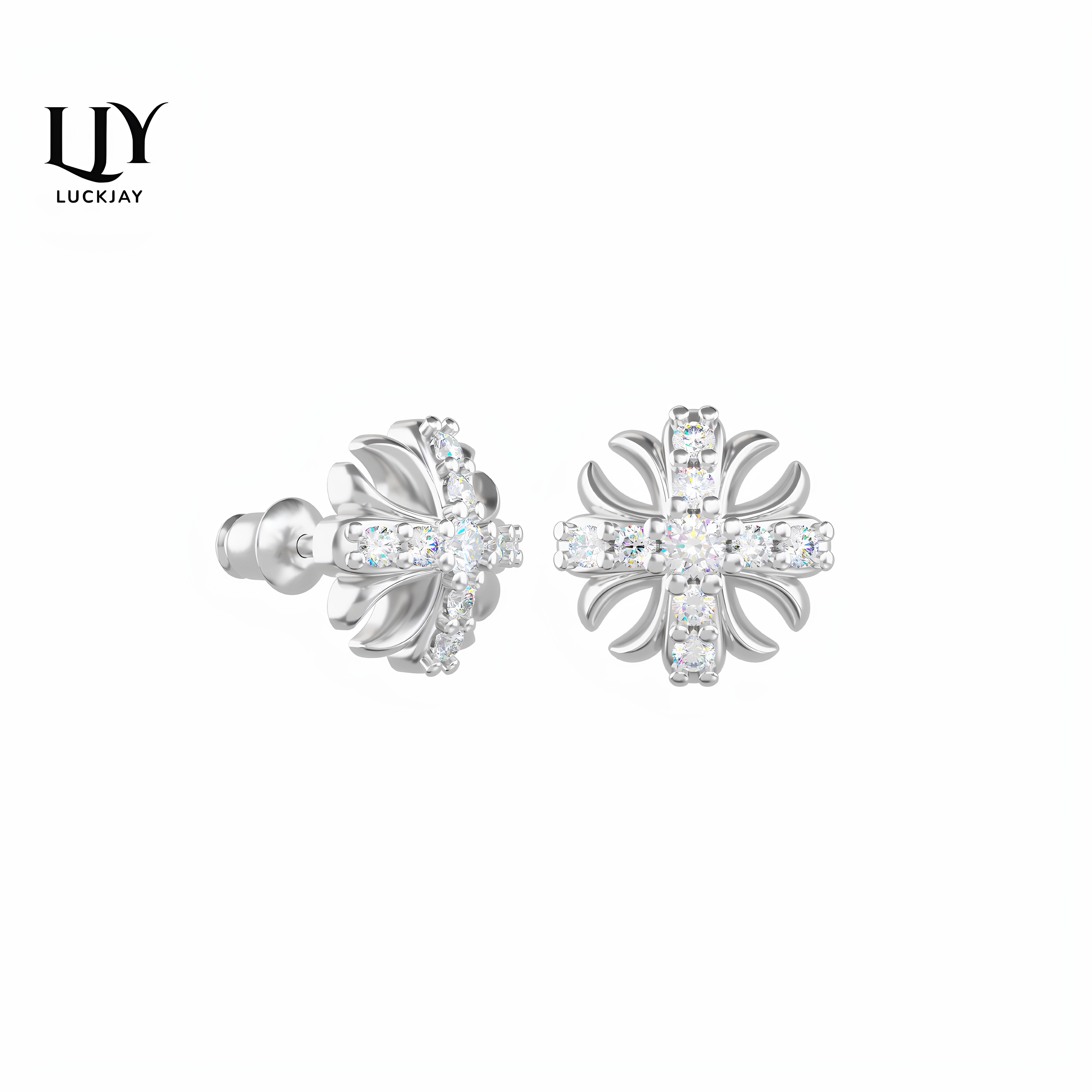 LUCKJAY S925纯银鸢尾花十字架耳钉情侣男女莫桑钻高级感七夕礼物
