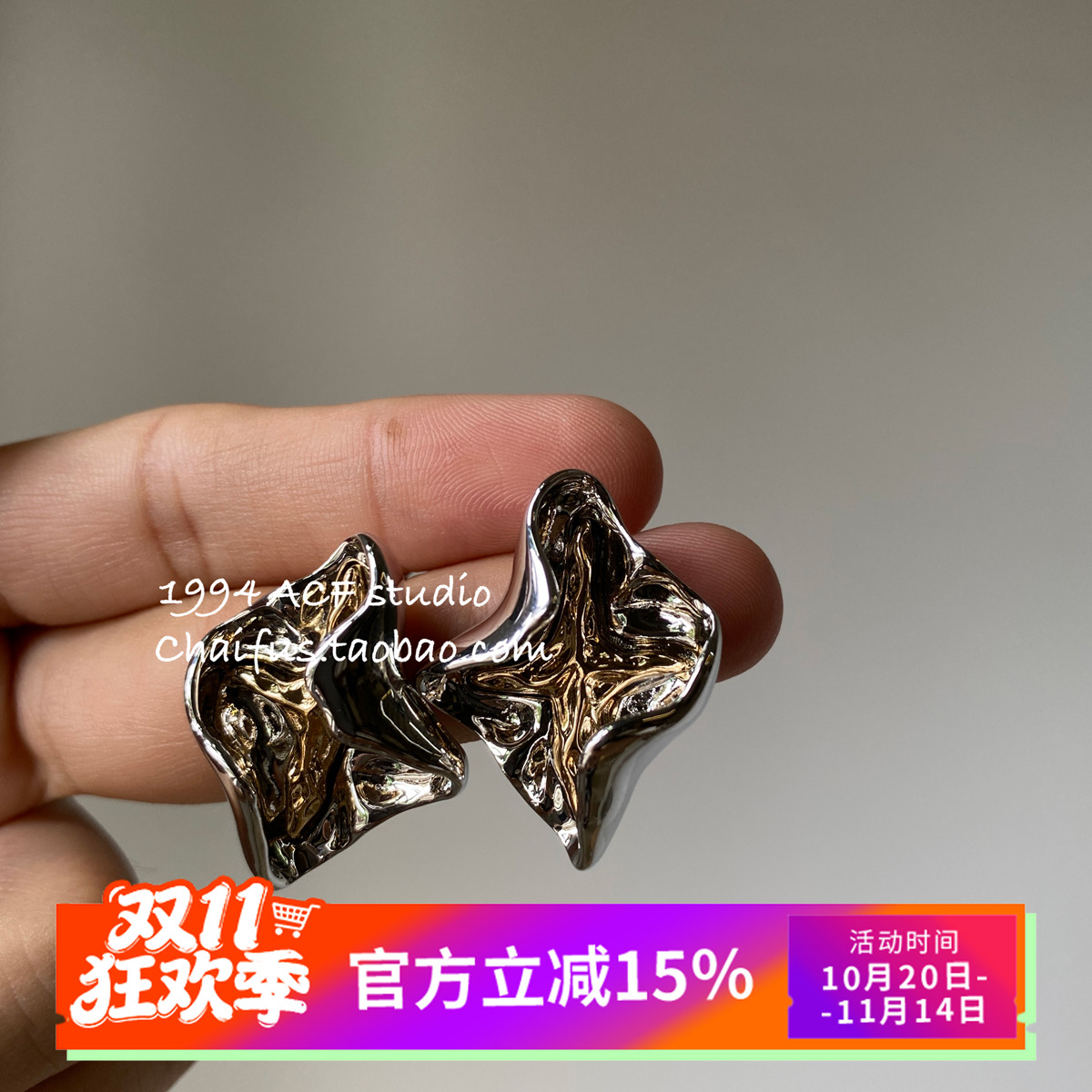 柴夫工作室/E537 韩系冷淡风凹凸十字架耳钉褶皱个性百搭耳环