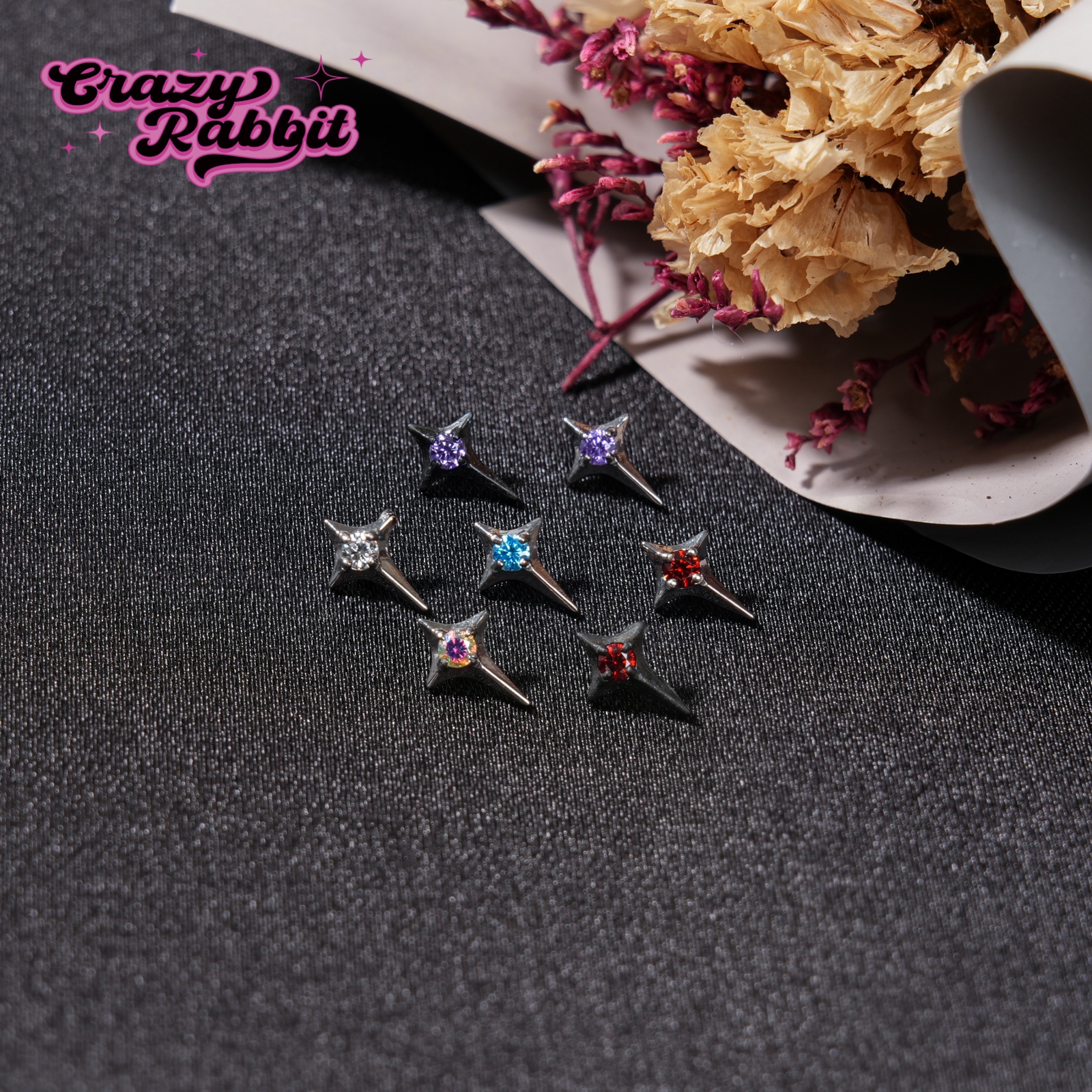 CrazyRabbit 爆闪四芒星钛合金十字架耳钉内螺纹耳骨钉小众耳饰女
