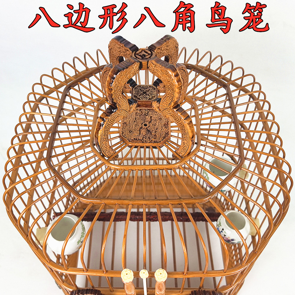 新款八角鸟笼高档画眉笼高级雕刻老竹纯手工广西底八边形鸟笼豪华