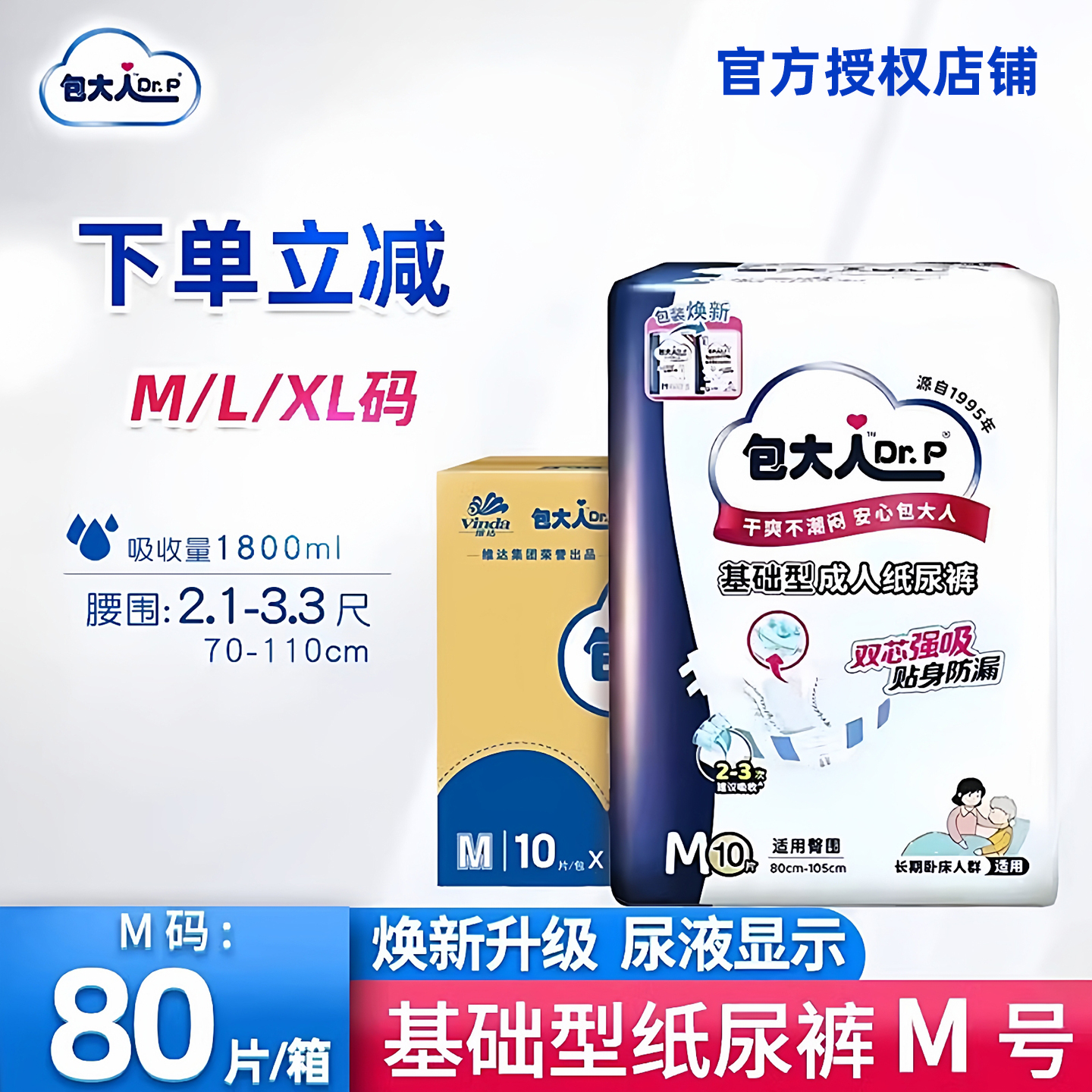【下拉详情享优惠】包大人基础型成人纸尿裤80片M码老人尿不湿
