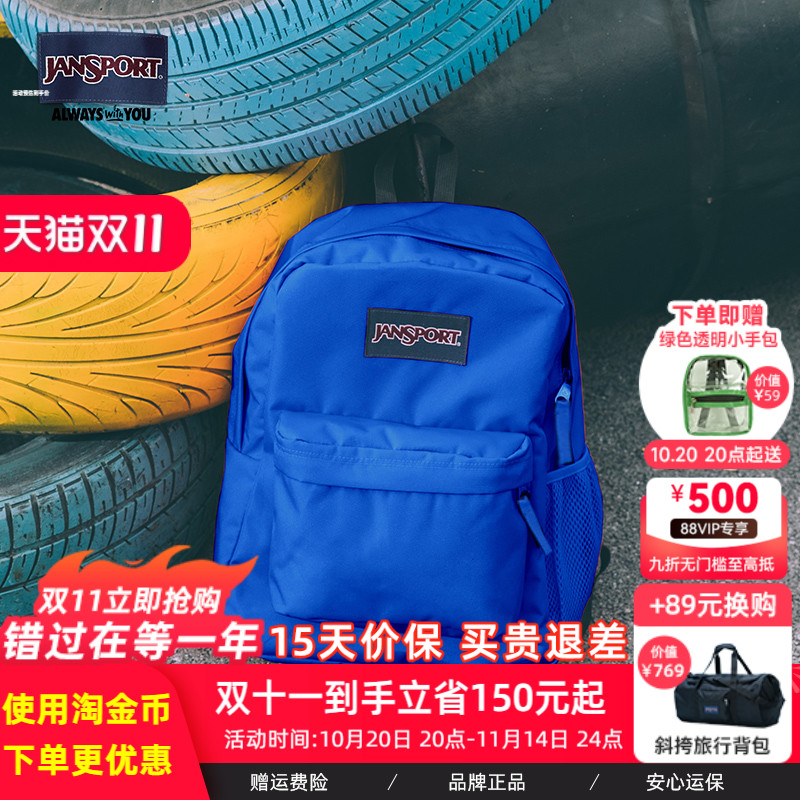 JanSport旗舰店克莱因蓝双肩背包大学生女高中轻便旅行通勤电脑包