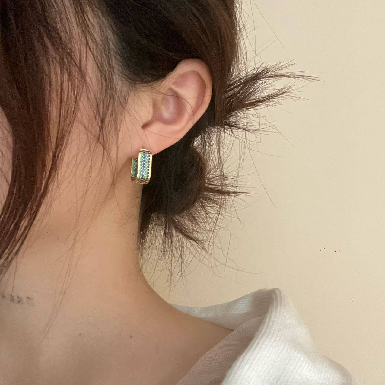 韩式复古简约U型耳环女时尚气质轻奢百搭耳钉ins高档镶钻时髦耳饰