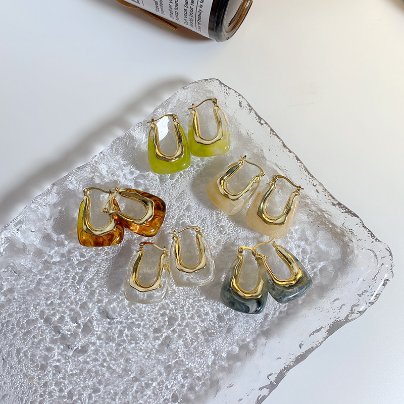 秋冬新款时尚个性小众复古高级感树脂设计感优雅简约百搭U型耳环