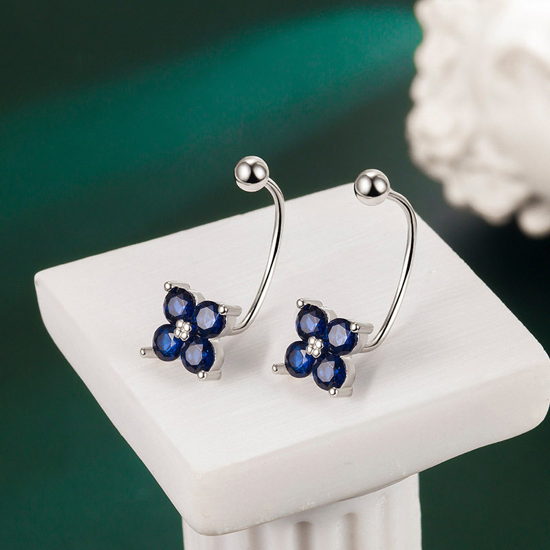 蓝色十字雪花坠耳骨钉钛钢U型十字架耳圈叠带小众双层蓝色耳环女