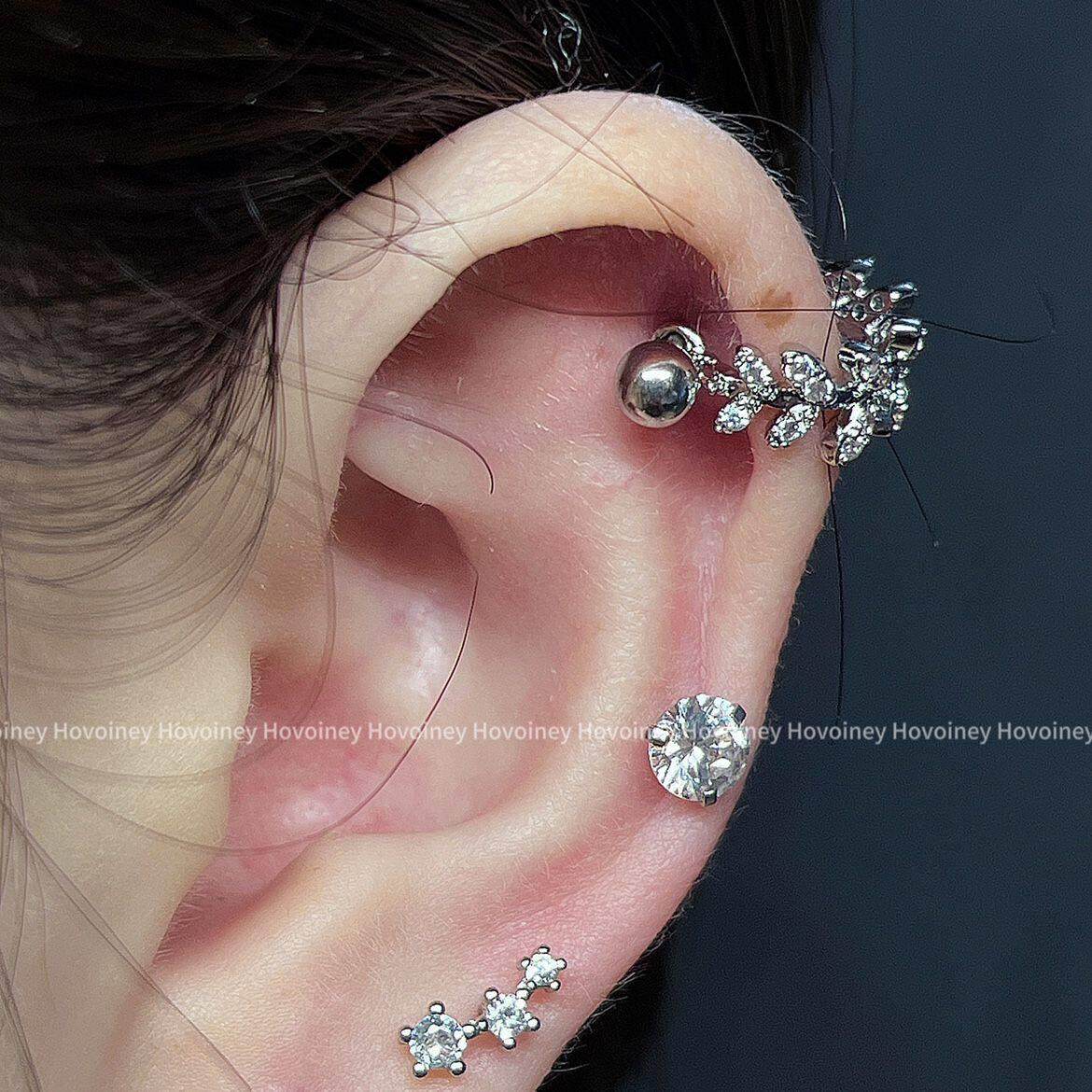 如蝶在野 超闪烟花钻马蹄环闪钻锆石耳骨环1.2杆U型耳环钛钢耳饰