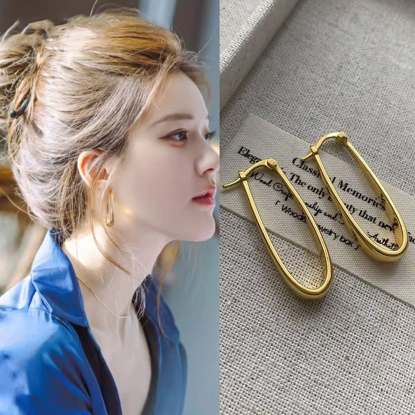 许我耀眼赵露思许妍同款U型金属耳圈ins风高级感几何水滴耳环耳饰