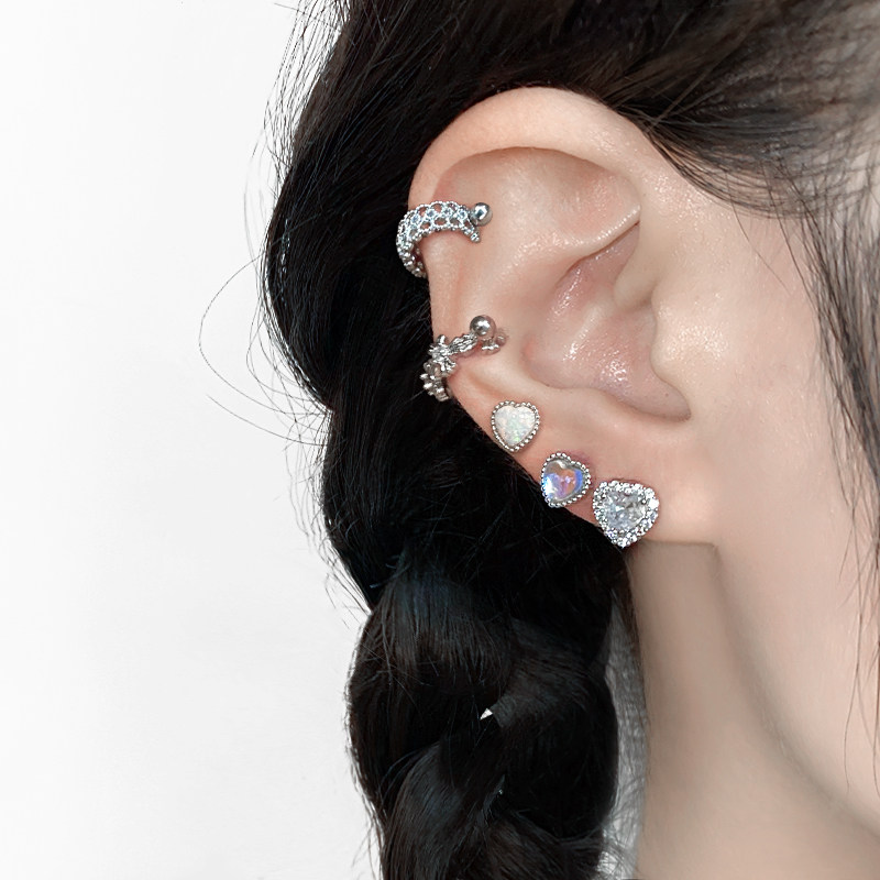 二十二丁目 爱心锆石耳环女气质桃心超闪高级感耳骨钉U型心形耳饰