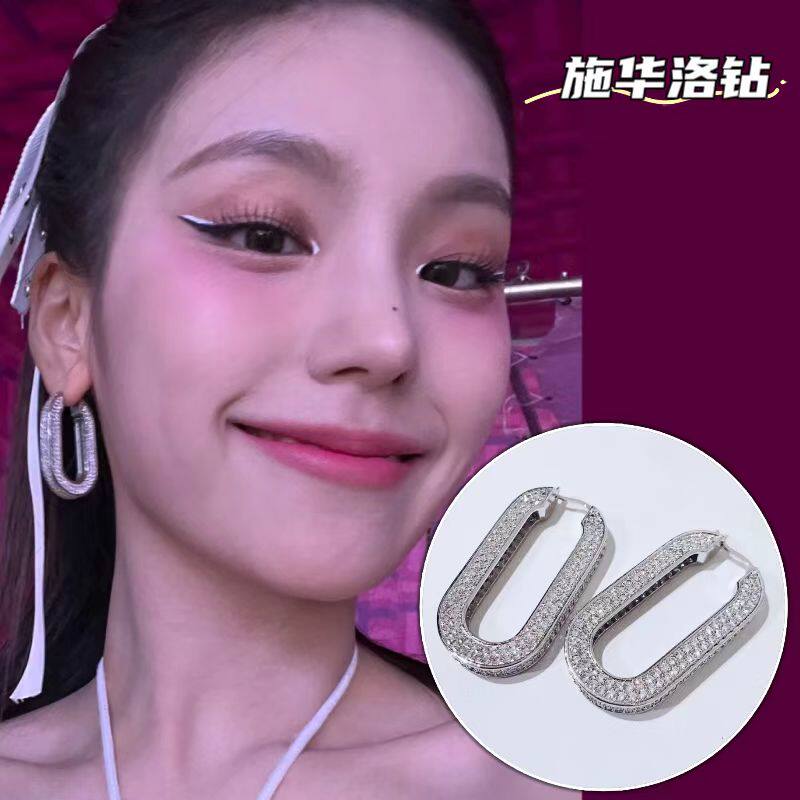 超闪莫桑钻耳圈通体925银U型耳饰排钻耳扣简约高级感气质轻奢耳环