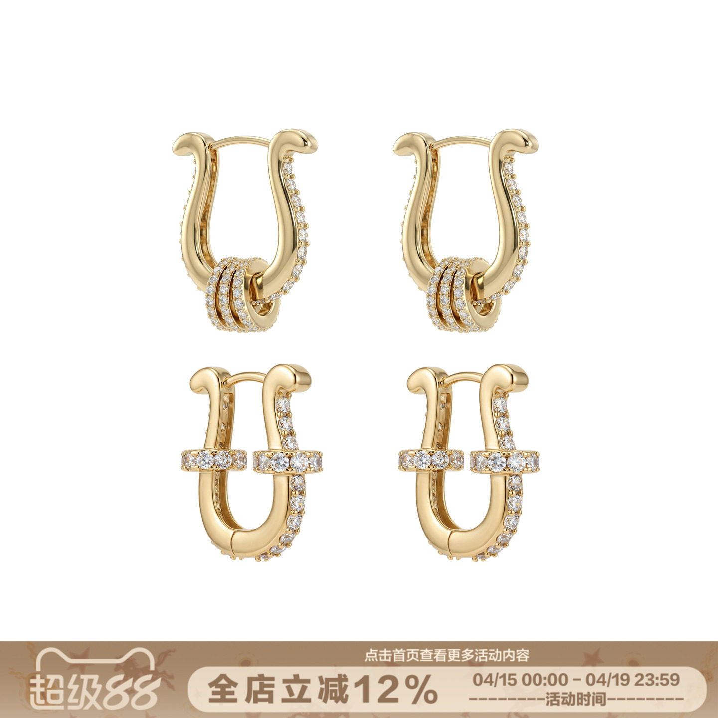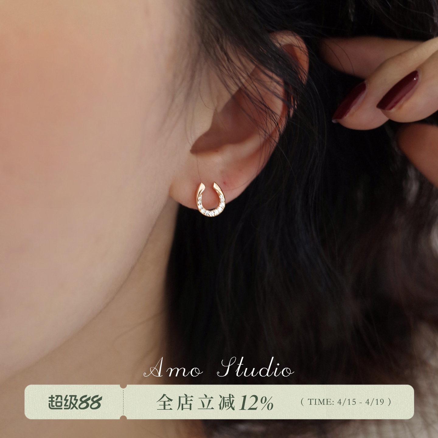 AMO小马蹄 闪钻U型马蹄扣耳环女设计感小众高级耳钉经典简约耳饰