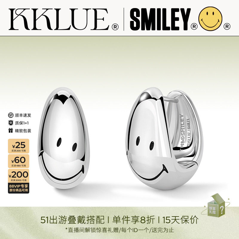 【51出游】KKLUE笑脸联名U型耳扣女银饰水滴耳钉耳饰耳环