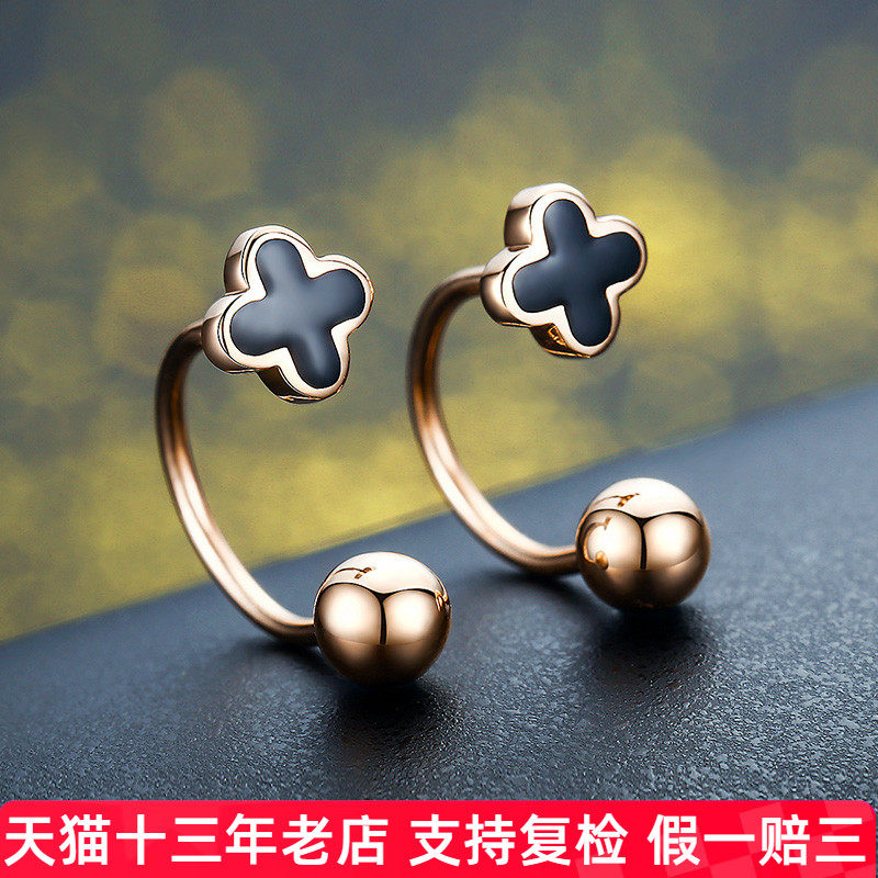 彩金拧扣款耳环18k金四叶草玫瑰金750u型螺丝耳钉耳饰2025爆款女