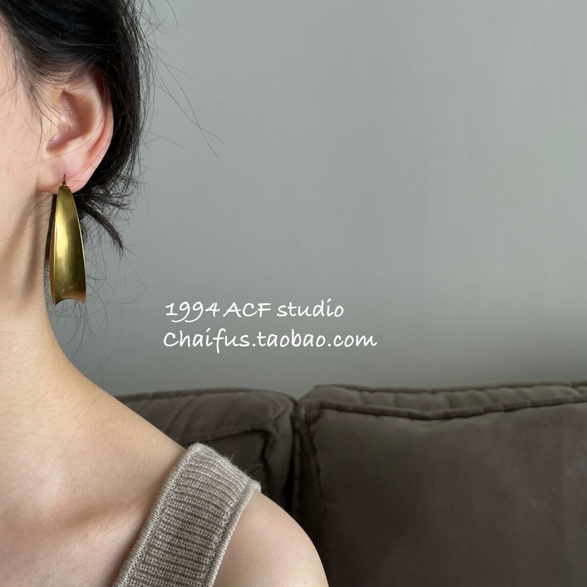 柴夫工作室/R228 欧美古铜U型镂空耳扣简约哑光质感金属大气耳环