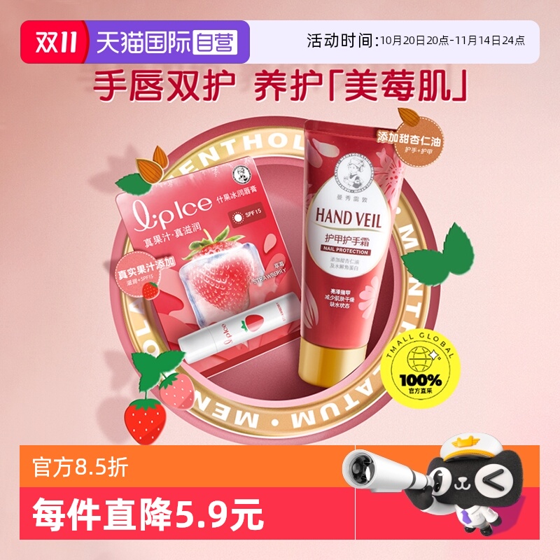 【自营】曼秀雷敦什果冰润唇膏保湿滋润防干裂补水护手霜套装礼盒