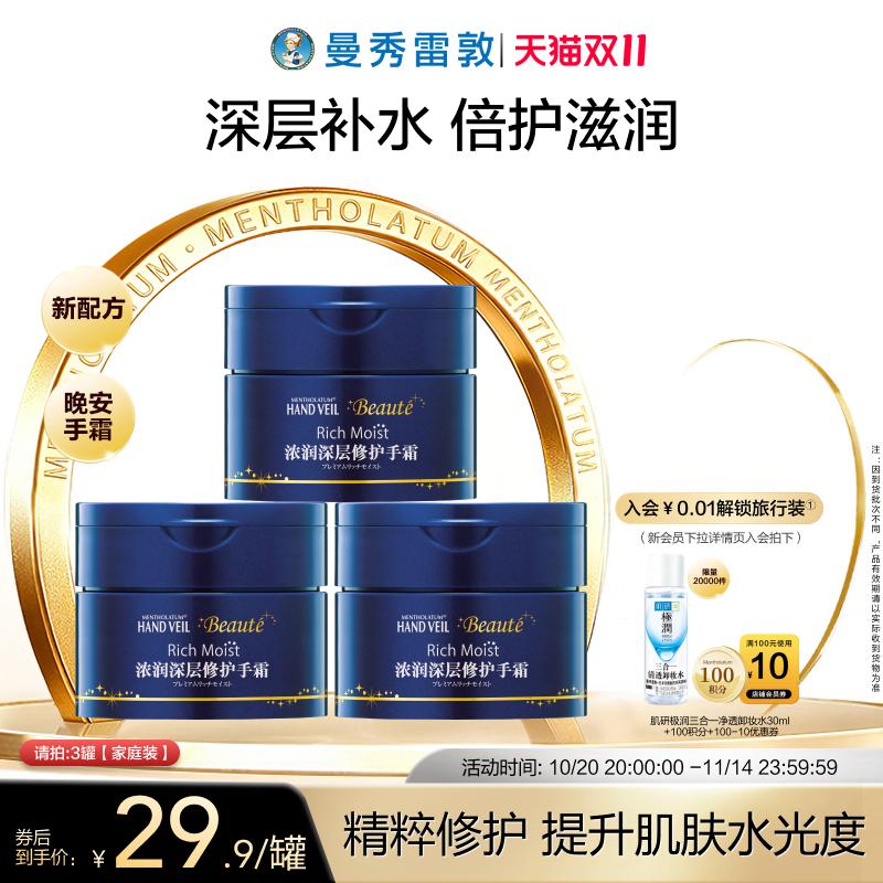 【下拉享淘金币】曼秀雷敦双效焕彩润手霜补水保湿滋润水嫩护手霜