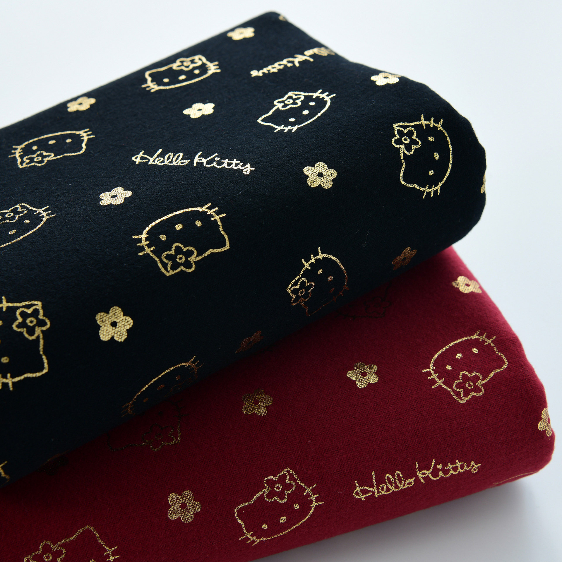 纯棉磨毛Kitty烫金棉布料手工DIY服装棉袄棉服面料卡通布料黑红色