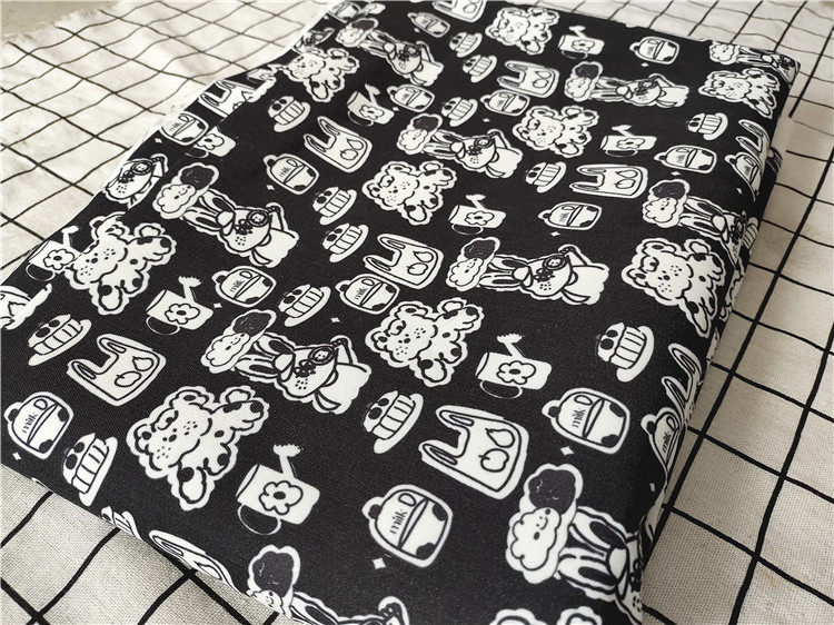 卡通布料细帆布印花手工diy面料沙发套布料包包宿舍桌布黑白格奇