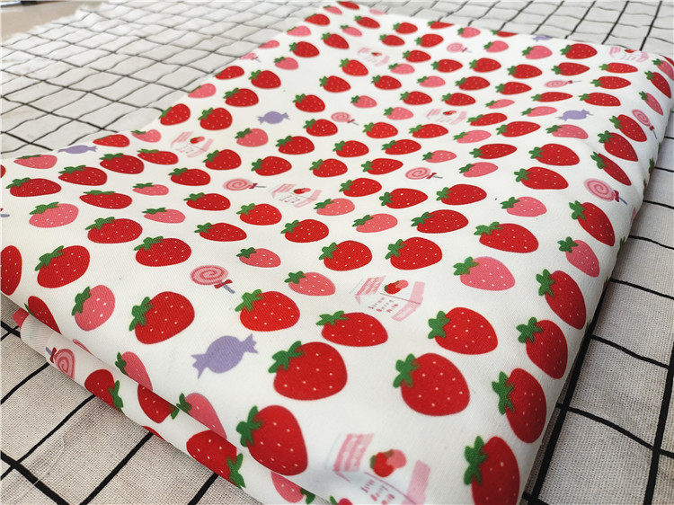 卡通布料细帆布印花手工diy面料沙发套布料包包宿舍桌布草莓盒棒