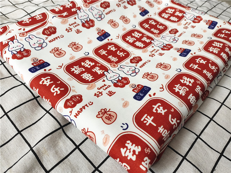 卡通布料细帆布印花手工diy面料沙发套布料包包宿舍桌布兔春新年