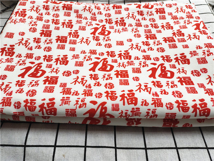 卡通布料细帆布印花手工diy面料沙发套布料包包宿舍桌布好喜庆运