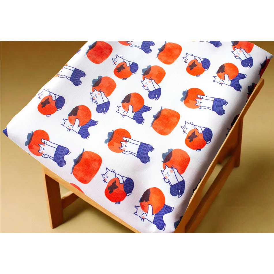 卡通布料细帆布印花手工diy面料沙发套布料包包宿舍桌布柿子酷猫